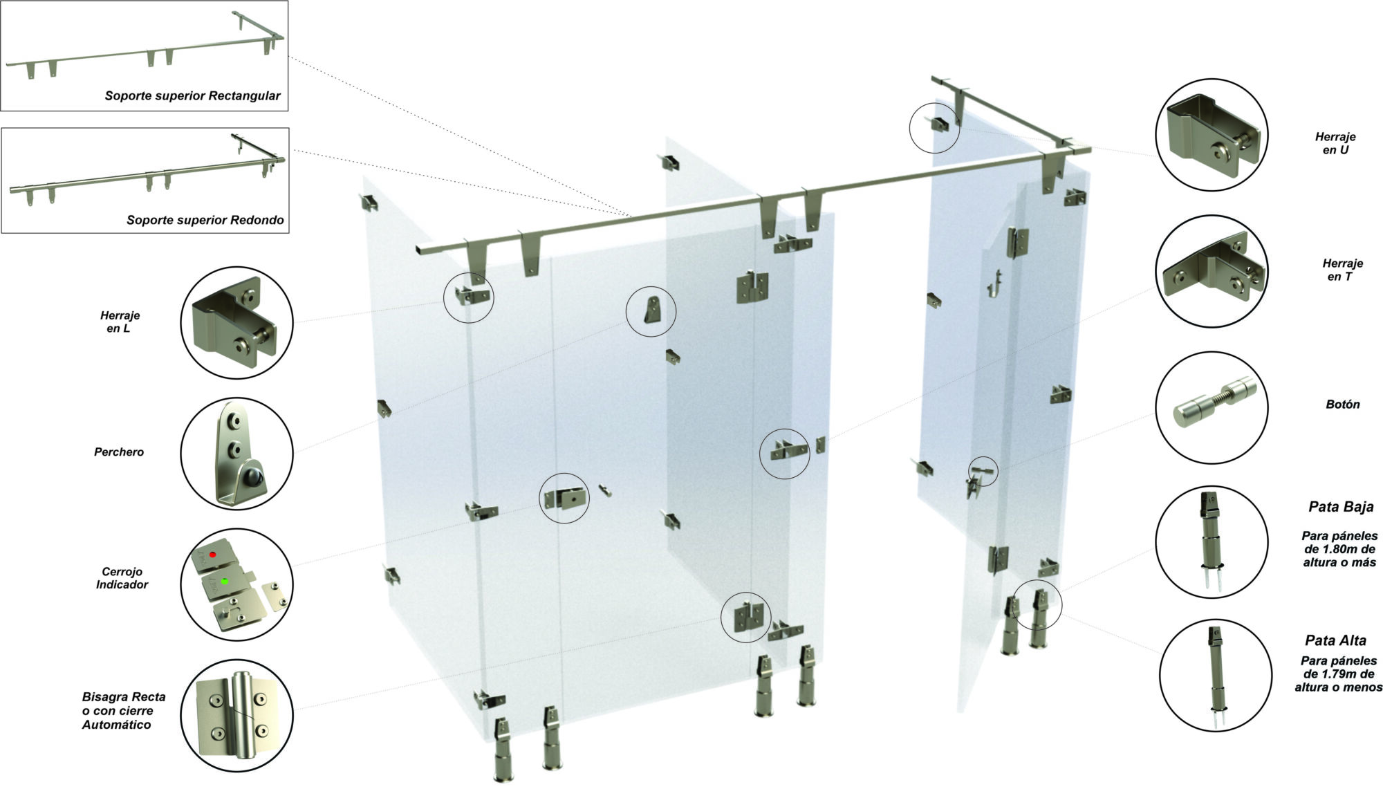 estabilizar aun mas las divisiones de paneles fenolicos, garantizando una instalación firme y resistente, ideal para ambientes de alto tránsito.