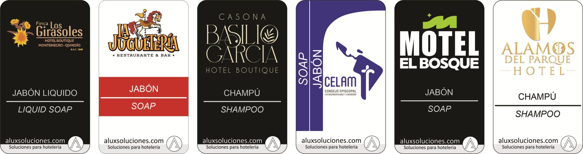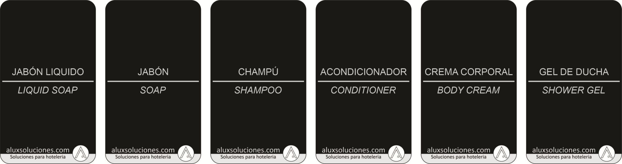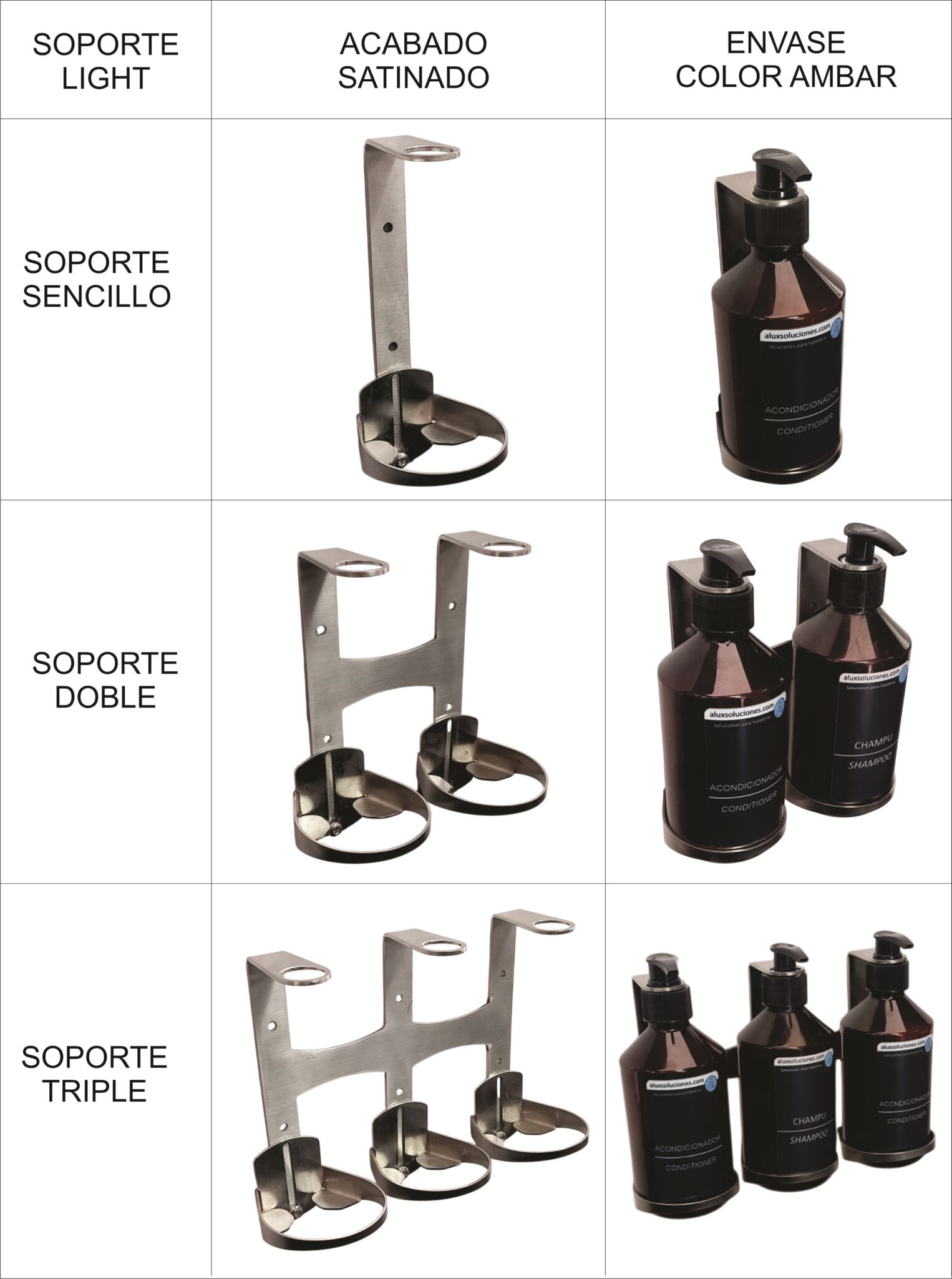 - Soporte para amenities con envase de 400 ml (shampoo, jabón, acondicionador o crema)